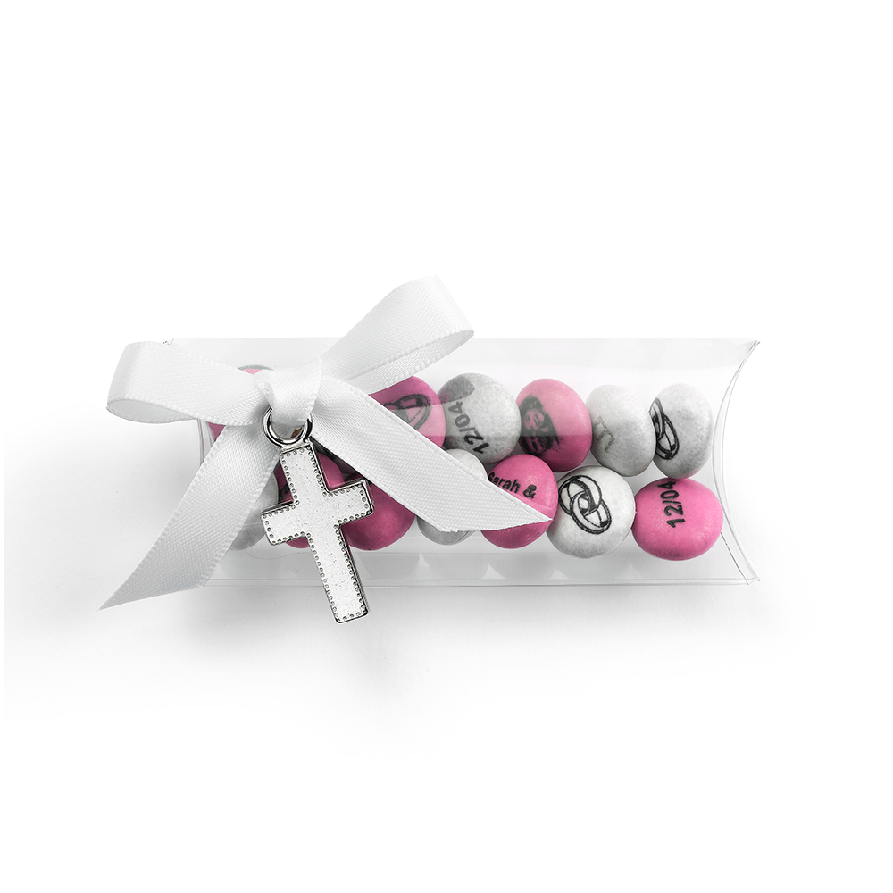 Die Kissenverpackungen werden ohne Zubehör angeboten; d. h. sie enthalten keine Schleifen oder Charms. Wenn Sie Ihre Kreationen vervollständigen und noch weiter personalisieren möchten (Schleifen, Charms usw.), gehen Sie in den Bereich "Personalisierung" und dann auf die Registerkarte "Zubehör".
