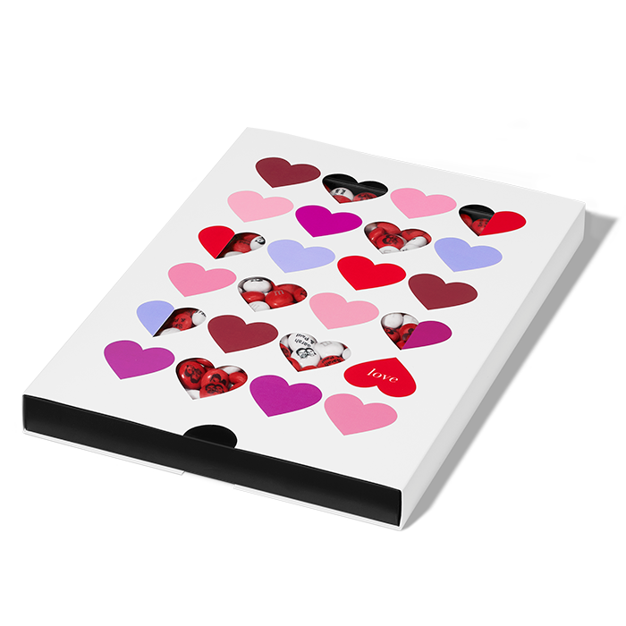 Ihre bessere Hälfte wird das Leben durch die rosarote Brillen sehen mit dieser schönen, farbenfrohen Schatulle voller Herzen. Dank der transparenten Herzen werden Ihre personalisierten M&M'S schon vor dem Verzehr enthüllt. Die Schatulle lässt sich öffnen, indem man sie über den Rand schiebt. Zum Vorschein kommt ein transparentes Etui mit Ihren personalisierten M&M'S, das die Qualität unserer Produkte bewahrt.