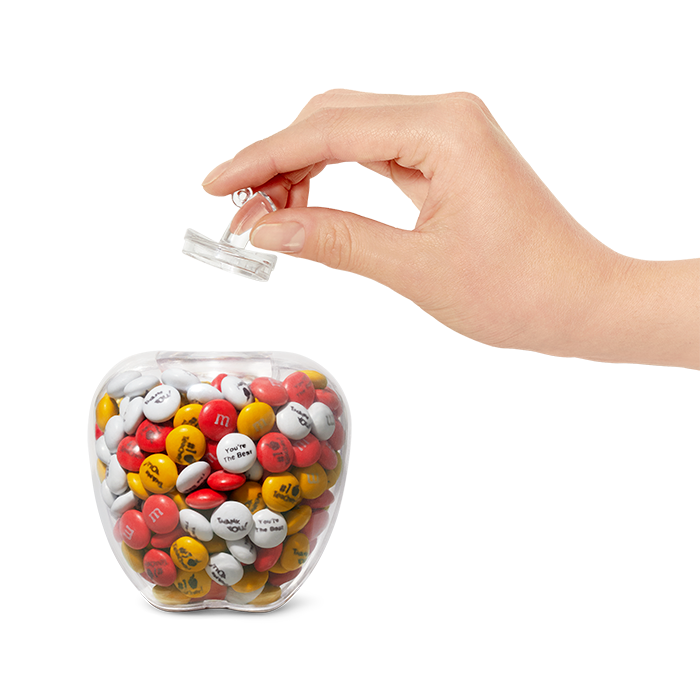 Be the apple of their eye with this adorable gift filled with your personalized M&M’S® chocolate candies peeking through from inside.
