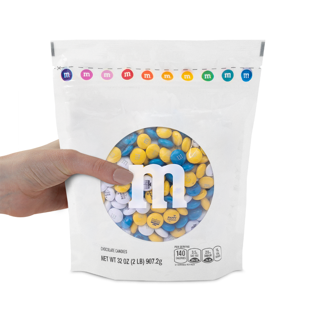 Oh, dreidel, dreidel, dreidel, if only you were chocolate! This Hanukkah, sweeten up the occasion with this bulk bag of pre-designed M&M’S. Blue, white, and yellow milk-chocolate candies designed to fit each and every night!