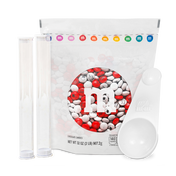 Contains 20 favor tubes and a 2 lb (907.2g) bag of custom blend M&M’S chocolate candies.