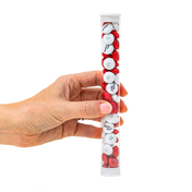 Candy: Each tube contains one 1.5 oz (42.5 g) serving of personalized M&M’S chocolate candies.
