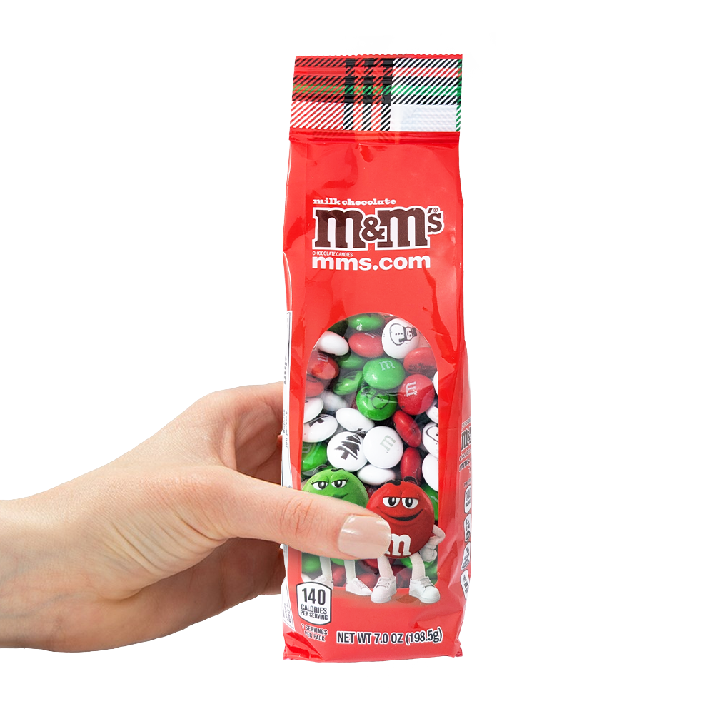 You can’t spell merry without m. Our gift-ready Christmas candy bags are each filled with 7 ounces of red, green and white M&M’S® chocolate candies that are printed with snowmen, trees, and “Merry Christmas.” Grab a single pack or set of three to share!