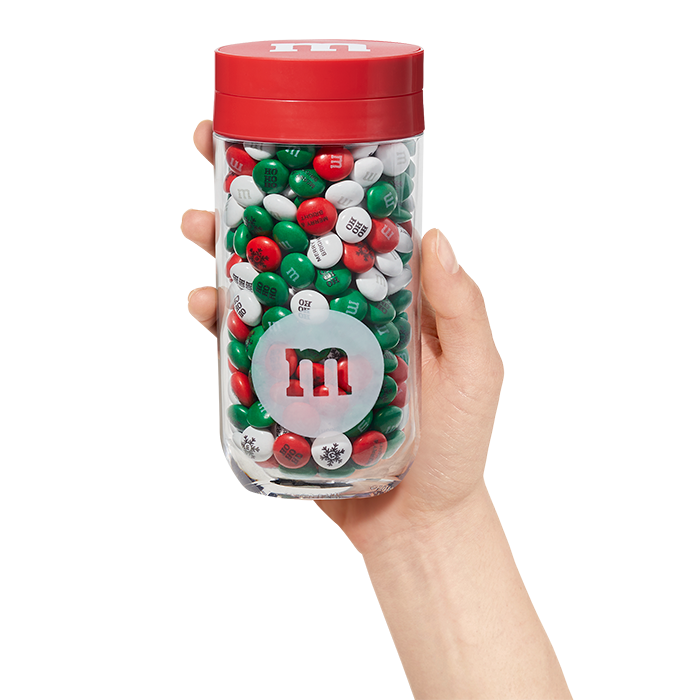 Jar up the holiday fun with a personalized gift that is sweet, seasonal, and stocked with everyone's favorite M&M'S® chocolate candies. Top it off with a lid of your choice, either a branded red or silver one.