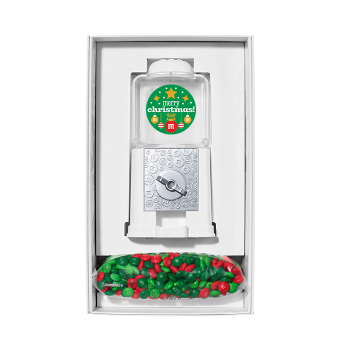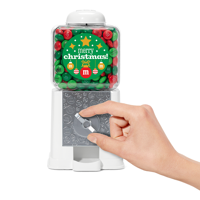 A holiday gift that delivers handfuls of fun with a twist of the turnkey. Make it personal when you create customized M&M’S® chocolate candies with colors, a photo, messages, or clip-art. The dispenser comes with your choice of holiday-themed design: a green background with the saying, “Merry Christmas” or a festive red design that says “happy holidays” in the center surrounded by our classic “m” logo border in white, green, and gold. This keepsake gift can be refilled with M&M’S® chocolate candies over and over again sharing treats way beyond the season. The dispenser arrives in a sleek, white gift box, ready-to-give to your lucky recipient.