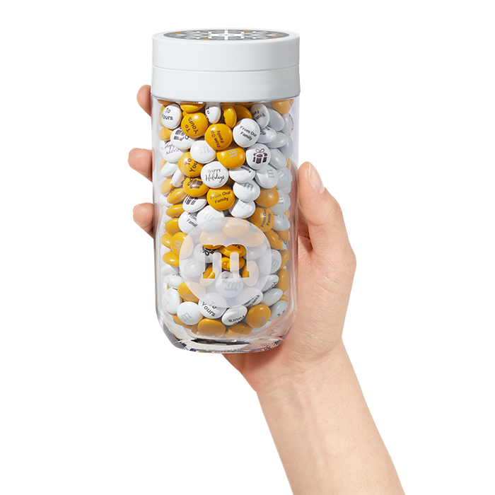 Each jar contains 12.7 oz (360 g) of personalized M&M’S, about 13 servings of M&M’S chocolate candies.