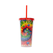 Share colorful fun with the world around you when you use the tie-dye tumbler for sipping your favorite beverages. A visual pick-me-up, the bright rainbow swirl design showcases floating M&M’S® in all our classic colors. Bring this stylish sipping accessory to school, work, practice, or use it in your car. The fitted red lid and reusable straw make it an on-the-go companion.
