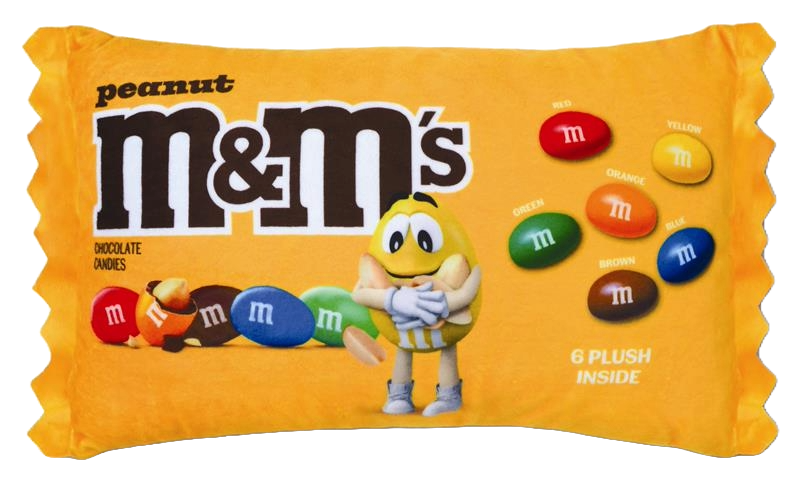 These colorful pillow sets are perfect for M&M’S® fans, collectors, or anyone who wants to add some fun to their décor. The design of the outer bag is reminiscent of our iconic Peanut and Milk Chocolate candy packages with a transparent window that shows the mini pillows inside. Each of the six soft mini pillows features our white m logo and is the shape of M&M’S® candies. The fun, squeezable mini pillows come in six of our classic colors: Red, Yellow, Blue, Green, Orange, and Brown.