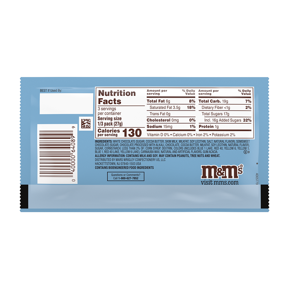 A deliciously playful twist on a classic flavor, M&M'S® Cookies and Crème is a tasty treat that is sure to satisfy your sweet tooth. Choose a 6-pack or 12-pack of 2.83oz (80.2g) packages, so you'll have plenty to share (or not) of this creamy, dreamy treat. You can fill candy bowls, make DIY party favors, or use as edible party decor for celebrations.