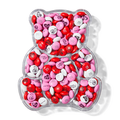 This clear gift box teddy bear (with cute ears and rounded belly) is filled with delicious personalized M&M’S. This delightful combo makes an adorable mother’s day, congratulations, new parent, or baby shower gift.