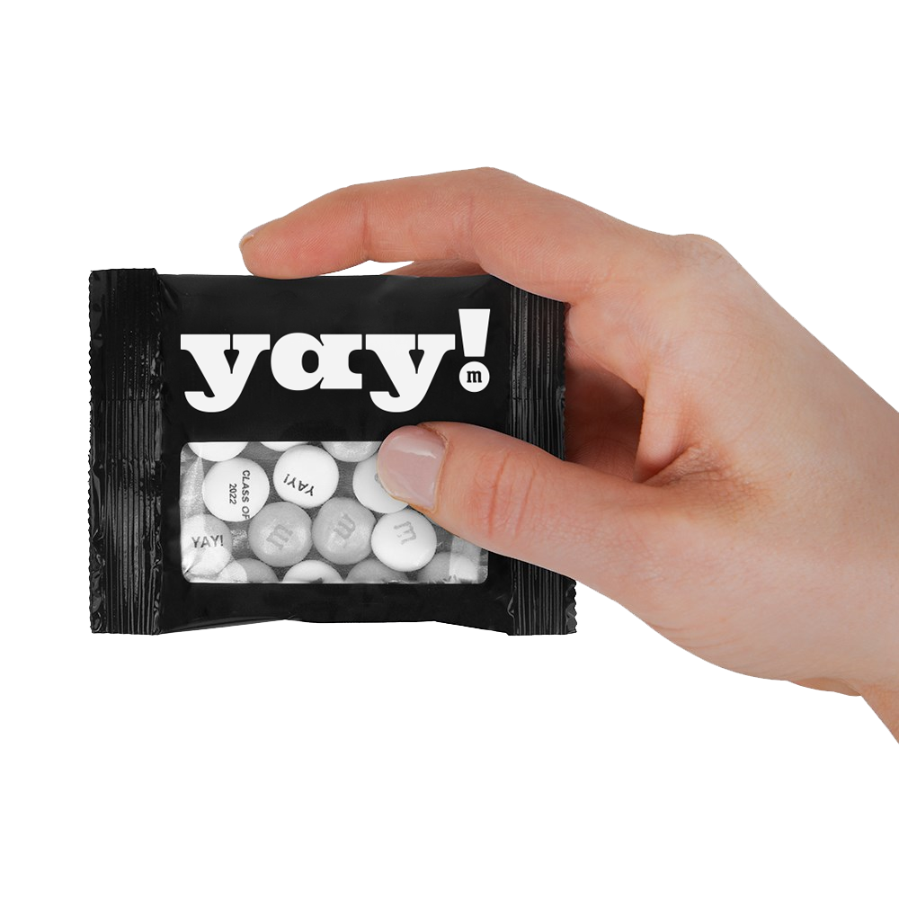 Looking for a unique way to celebrate a YAY-worthy occasion? Stock up on Personalizable M&M’S YAY Congratulations Favor Packs to celebrate any special achievement. Each party favor pack features YAY in white lettering and a cute peek-a-boo window showing the scrumptious M&M’S with custom-created messages inside.