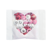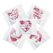 Favor pack filled with 0.75 oz (21 g) of personalized M&M’S® chocolate candies. Personalize M&M’S® candies with colors, dates, names, messages, or clip-art. White favor pack with clear heart-shaped window to see M&M’S® candies inside. Features text “miss” with a line through it and then “mrs.” Minimum order of 20, then sold in increments of 5.