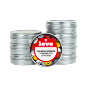 Personalized M&M'S Favors just got even more personal! That's right, our round silver favor tins now let you add custom text to your choice of five unique designs PLUS personalize the M&M'S inside. With custom lid designs perfect for birthday parties, wedding celebrations & more, the options are endless. Choose your custom lid design, add your message (or you can leave it blank!) and personalize the M&M'S inside to match your parties theme. Choose from over 20 colors, fun clip-art, messages, and even upload your own photo to make your special event even more memorable!