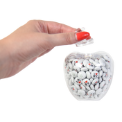 Clear apple-shaped gift box filled with white M&M’S® chocolate candies printed with “I Heart NY” Each gift box contains 10.1 oz (286.3 g), or about 10 servings, of M&M’S® milk chocolate candies