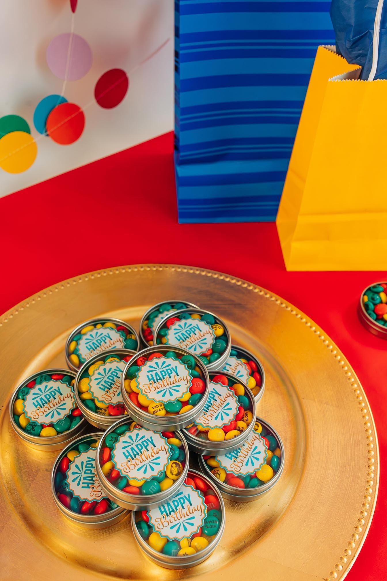 1. galentine's day celebratory spread with personalized m&m's gifts