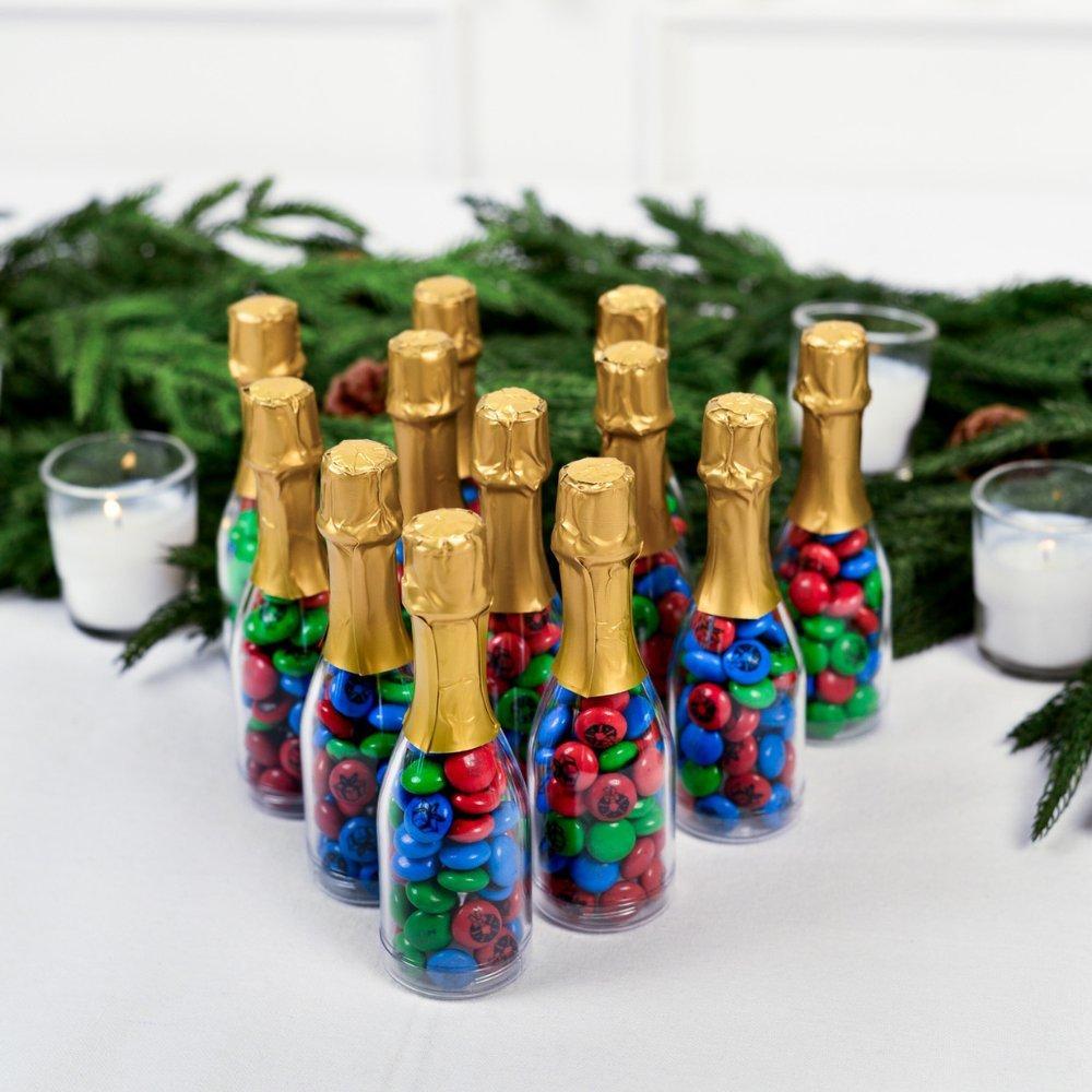 ¿Vas a celebrar un evento? ¡Pues este es el toque festivo que impresionará a tus invitados! Regálales estas botellas mini doradas y rellénalas con unos M&M'S personalizados. Una boda, un cumpleaños, Año Nuevo... la ocasión es lo de menos. Escoge este bonito detalle para alegrar la decoración de la mesa al instante.