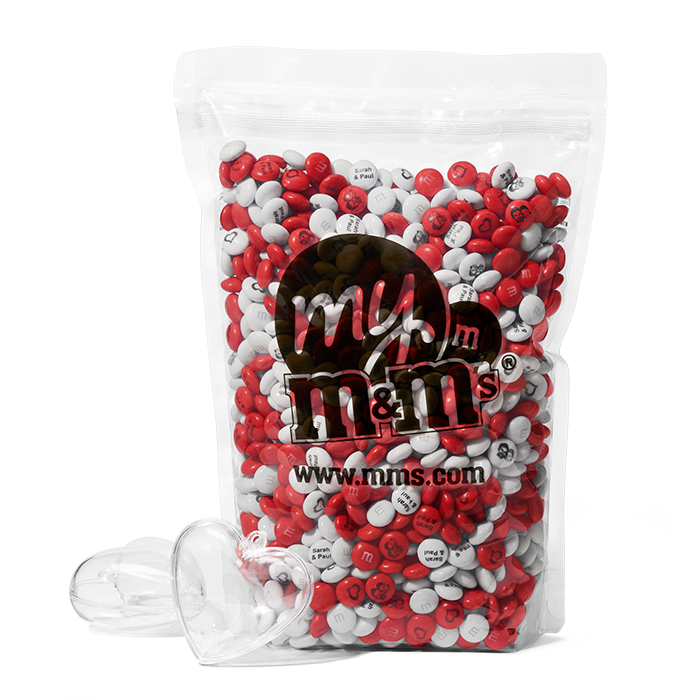 • Ce lot contient un sachet de 1,5 kg de M&M'S personnalisés ainsi que 40 coeurs en plastique à remplir qui peuvent contenir environ 37 g de M&M'S.