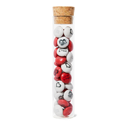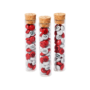 Deze mooie glazen buisjes missen hun effect niet. De setjes zijn heel gemakkelijk te maken: haal de kurk eraf, vul de buisjes met je gepersonaliseerde M&M’S, en klaar!