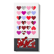 Een kleurrijk cadeau vol hartjes. Je geliefde zweeft zo naar de zevende hemel! Door de hartvormige uitsparingen kan de ontvanger al van jouw gepersonaliseerde M&M’S genieten vóór ze te proeven.