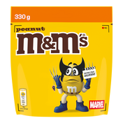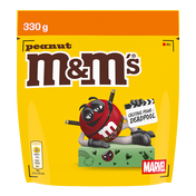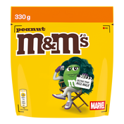 elk pack bevat 330 g M&M’S Peanut snoep