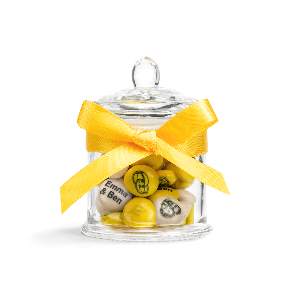 Dodaj swojej imprezie oryginalności dzięki tym szklanym minibombonierkom do napełnienia. Będą jedyną w swoim rodzaju, niezwykle elegancką dekoracją stołu! Ślub, chrzest, komunia czy rocznica – napełnij je spersonalizowanymi drażetkami M&M’S w kolorach swojej imprezy i wpraw gości w zachwyt.