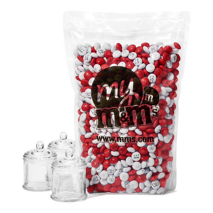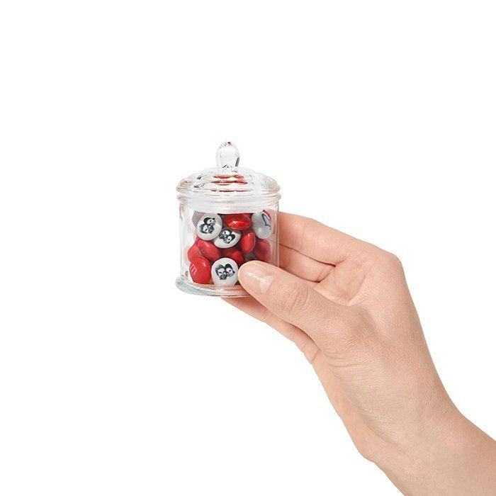 Zawartość: • Komplet zawiera torbę z 1,5 kg spersonalizowanych M&M’S oraz 30 szklanych minibombonierek do napełnienia, które mogą pomieścić około 35 g M&M’S.