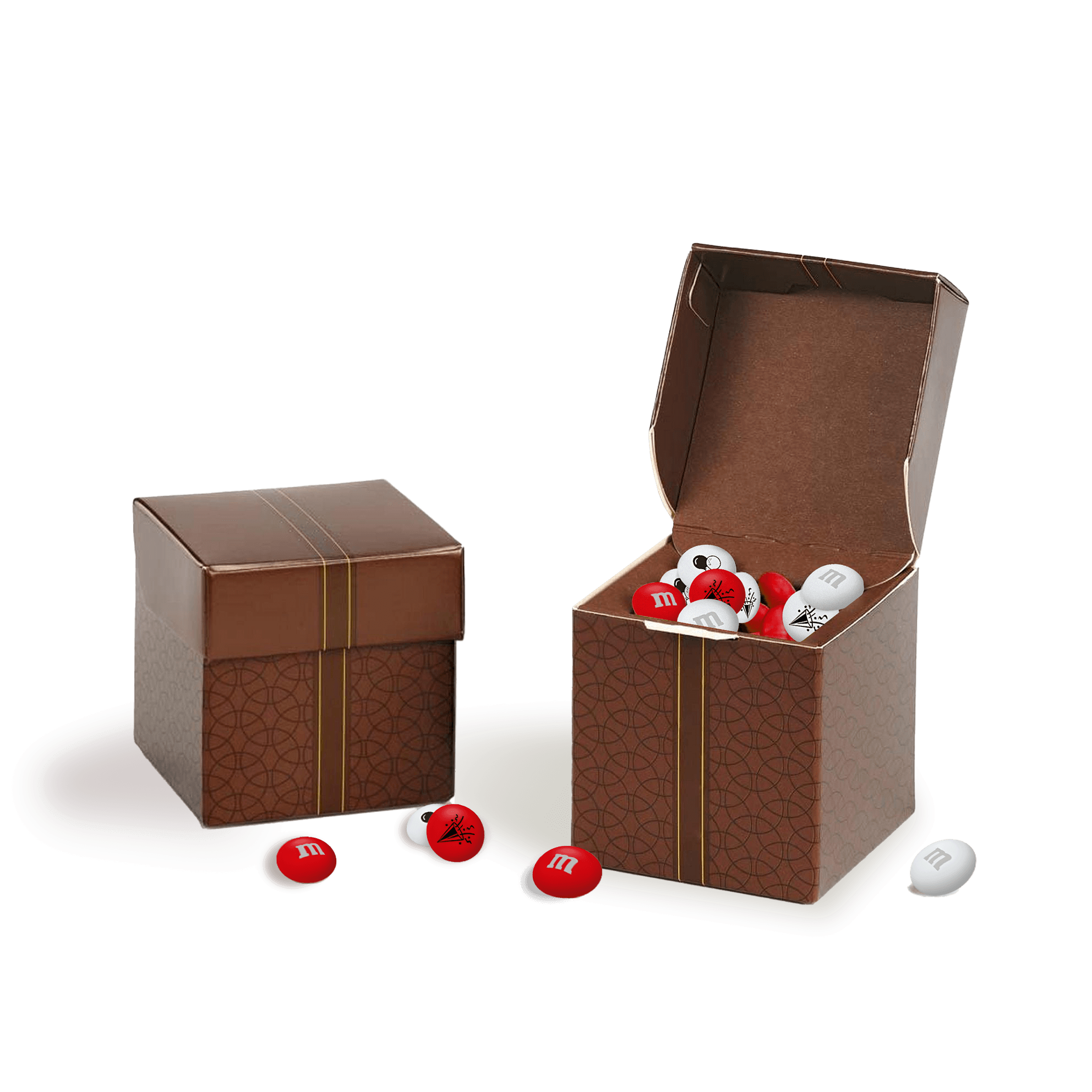 Niech ten mały upominek będzie dla gości imprezy wyjątkową pamiątką. W środku tego eleganckiego prezentu w formie kostki kryją się personalizowane czekoladowe draże M&M’S. Wybierz własne pełne słodyczy kolory, dodaj cliparty, zdjęcia i tekst, by upamiętnić ważną imprezę.
